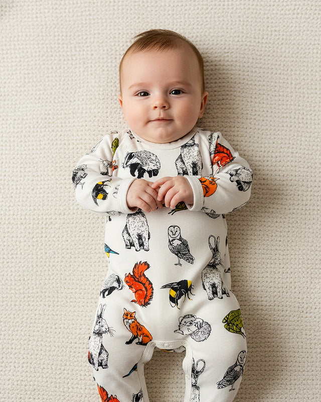 Nos vêtements sont fabriqués à partir de coton biologique certifié GOTS et nos imprimés intégral sont créés dans une usine certifiée Okeo Tex. Les encres que j'utilise et que j'ai toujours utilisées sont des encres sérigraphiques entièrement à base d'eau. Ils ne contiennent pas de solvants. Contrairement aux autres encres textiles, elles ne contiennent pas de formaldéhyde et n'émettent aucun gaz toxique lors de la fixation. Ils ne contiennent ni métaux lourds ni pigments nocifs et ne contiennent pas de PVC. Je mélange mes couleurs en petits lots afin qu'il y ait des variations entre les imprimés des vêtements, mais c'est ce qu'est l'impression à la main. Ce n’est pas produit en masse donc c’est plus spécial. Ils sont imprimés pour durer lavage après lavage et destinés à être transmis.